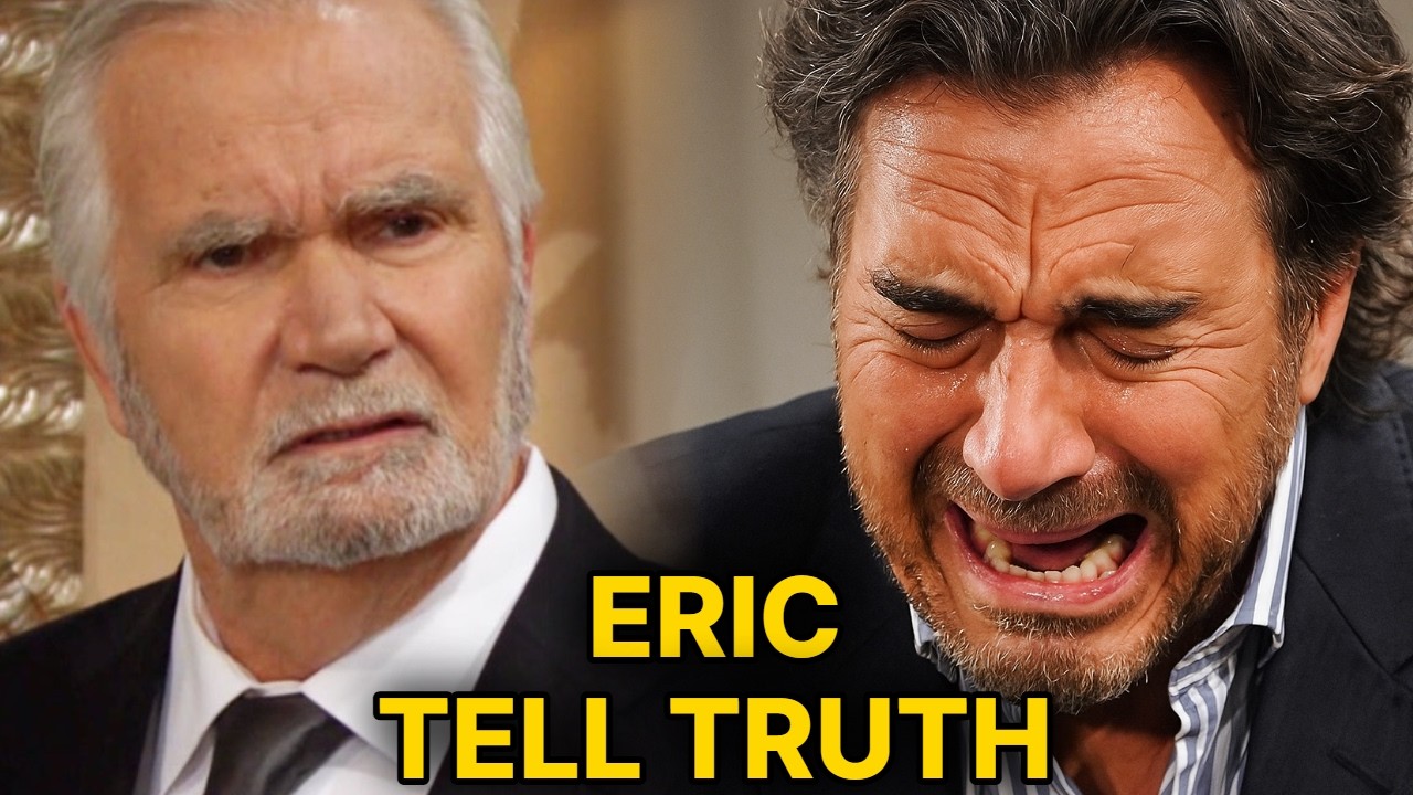 At the Forrester mansion, Ridge asks Eric’s forgiveness up in the bedroom. Eric has some more ranting to do first