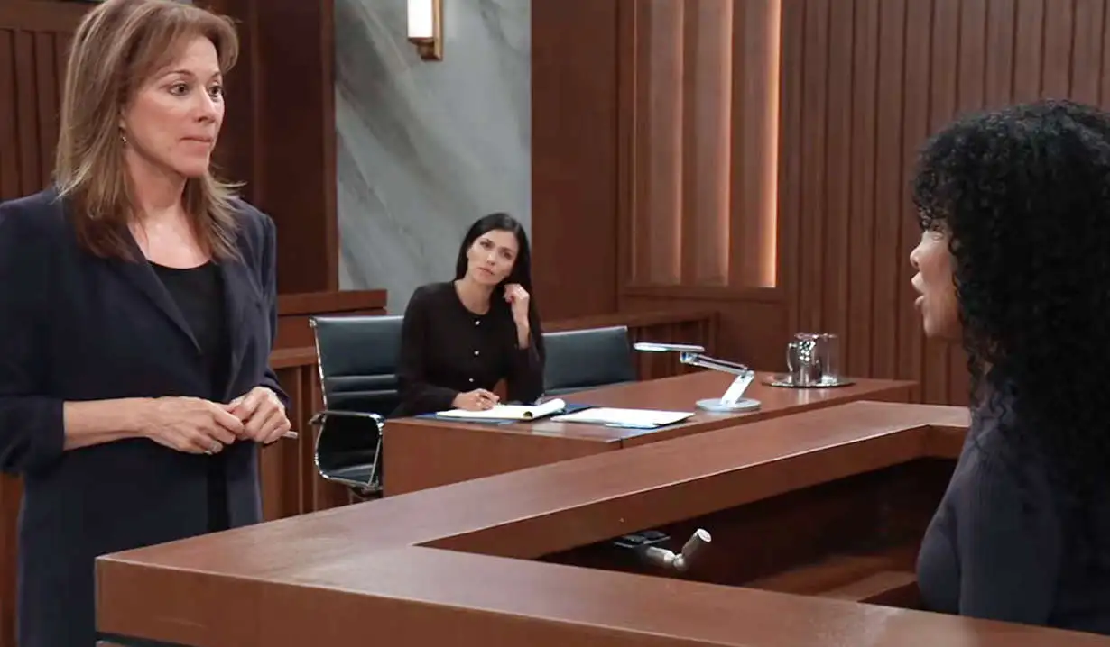 Portia and Ava arrive, and Alexis calls Portia to the stand. As Portia is sworn in, Drew panics and asks why she is putting Portia on the stand. Alexis says it will help Willow’s case.