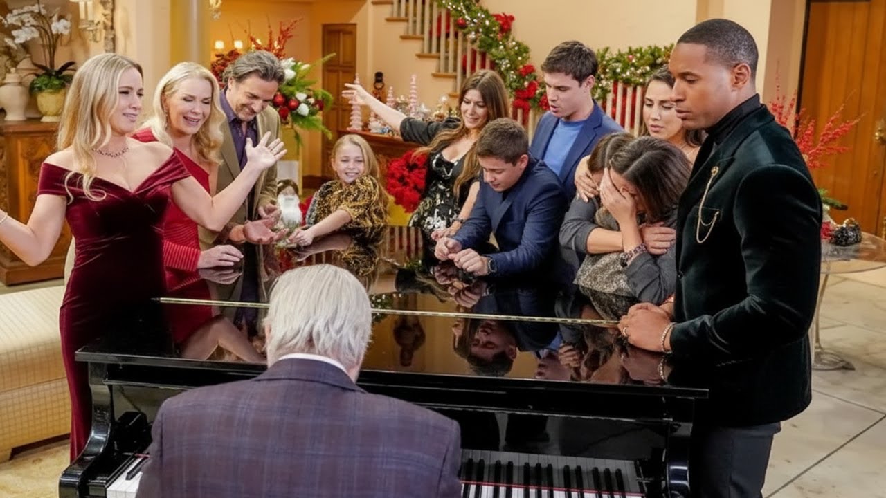 The episode opens with the Forrester mansion adorned in twinkling Christmas lights, creating a seemingly idyllic backdrop for what promises to be a festive gathering. Yet beneath the glimmering decorations lies an undercurrent of unease. This night is not merely a holiday celebration—it is a farewell party, a poignant acknowledgment of departures that will leave a lasting imprint on the family. Eric Forrester, patriarch of the family, takes center stage in a deeply personal moment. Seated at the grand piano, he performs a heartfelt song, each note resonating with sorrow, nostalgia, and love. The music becomes a bridge between past and present, reminding the family and viewers alike of both the beauty and fragility of their connections.
