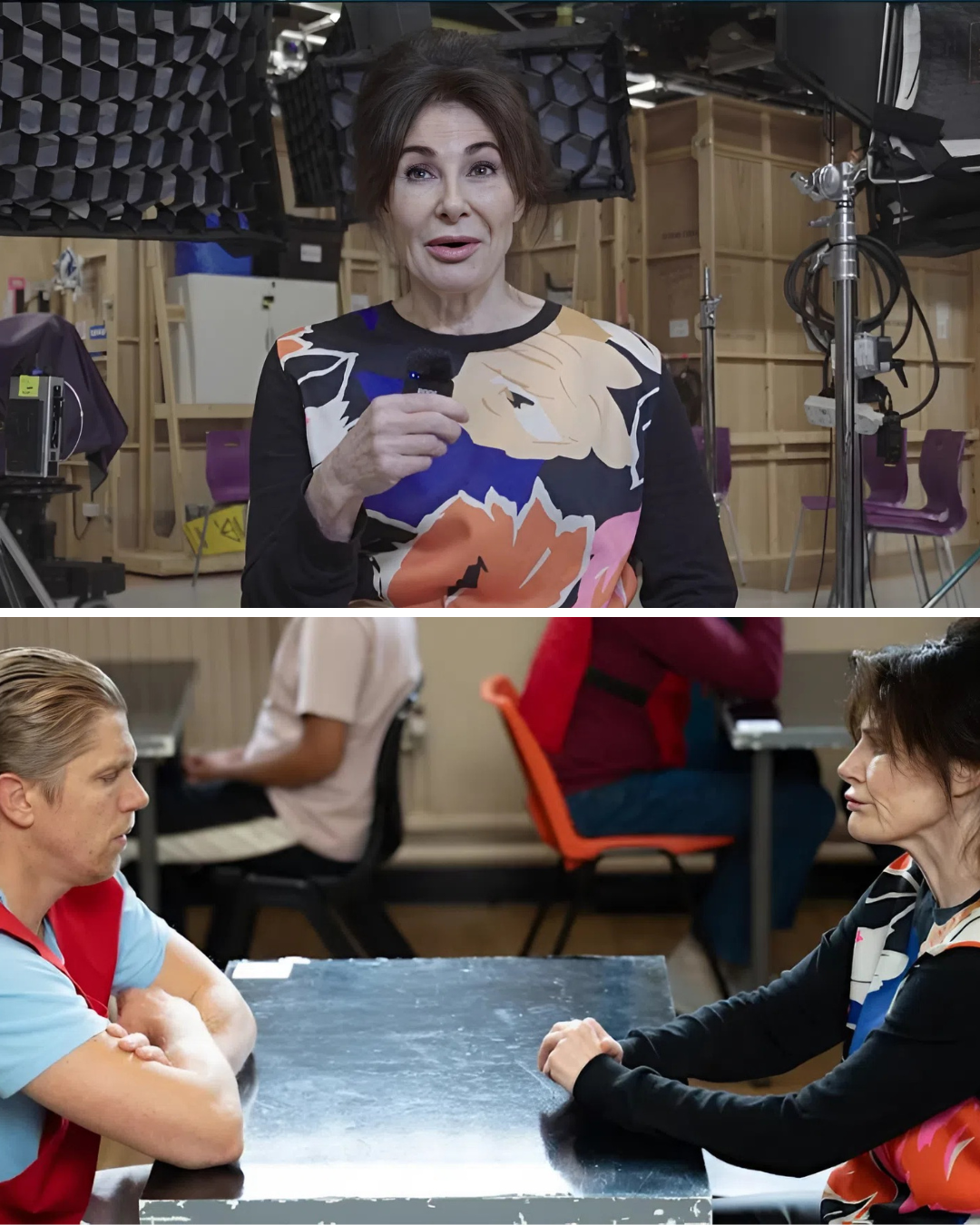 “Hello! They’ve thrown me in prison with Robert,” she laughed. “It’s a flashback episode, and it’s delightful to be back doing it.”