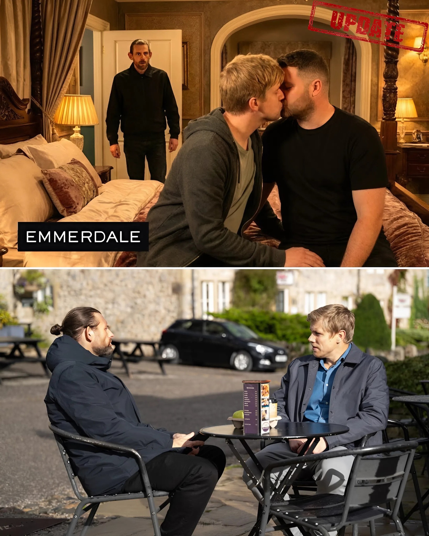 Information is currency in Emmerdale — and Kev may use it to manipulate, blackmail, or destabilize both men.