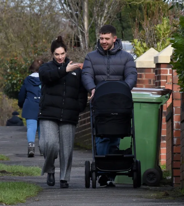 Wrapped up in a cosy North Face coat, Isabel kept things casual for the daytime outing, letting husband Adam take charge of the pram as they headed out with their newborn. The actress was all smiles, appearing calm and content as the couple embraced those early newborn days.